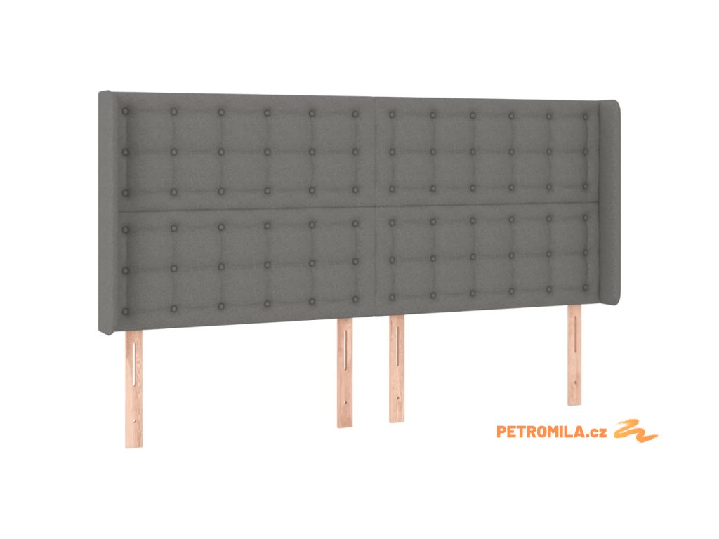 Čelo postele s LED tmavě šedé 203 x 16 x 118/128 cm textil