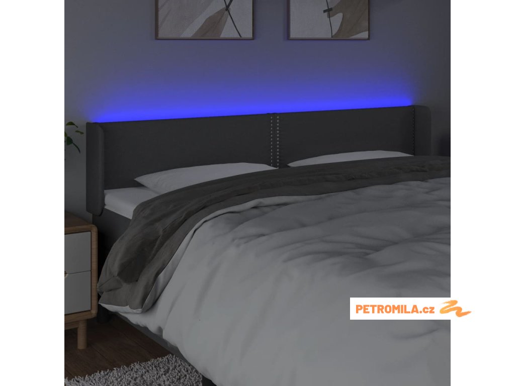 Čelo postele s LED tmavě šedé 203 x 16 x 78/88 cm textil
