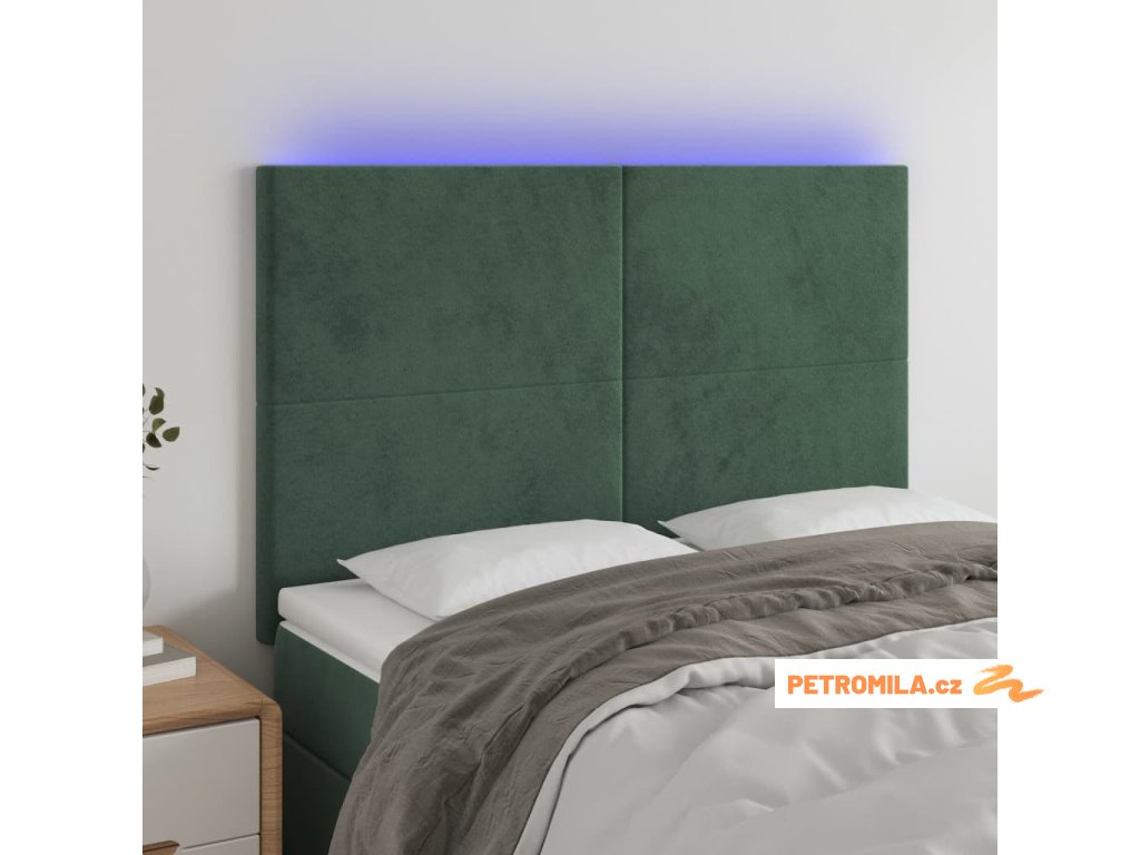Čelo postele s LED tmavě zelená 144x5x118/128 cm samet