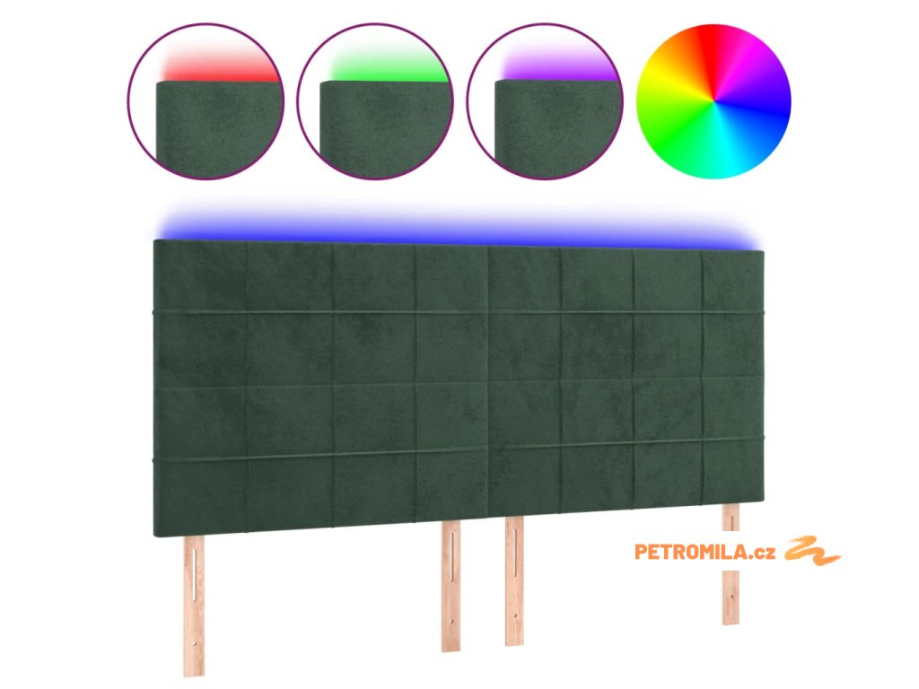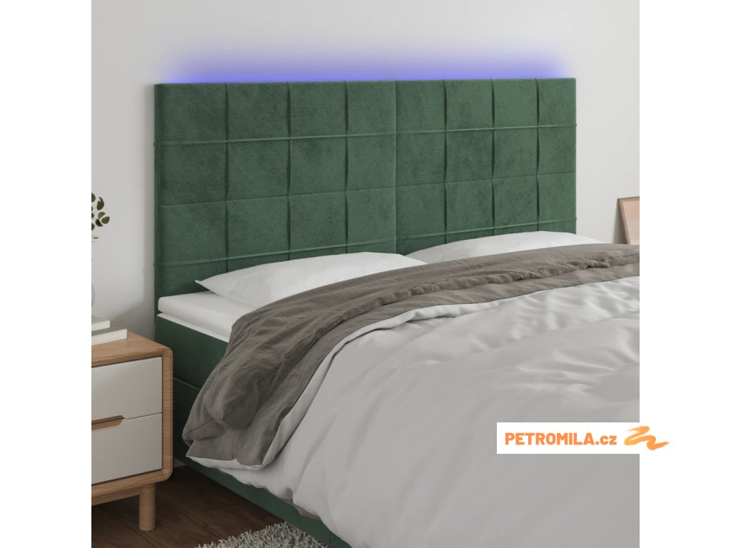 Čelo postele s LED tmavě zelená 180x5x118/128 cm samet