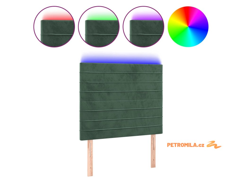 Čelo postele s LED tmavě zelená 90x5x118/128 cm samet