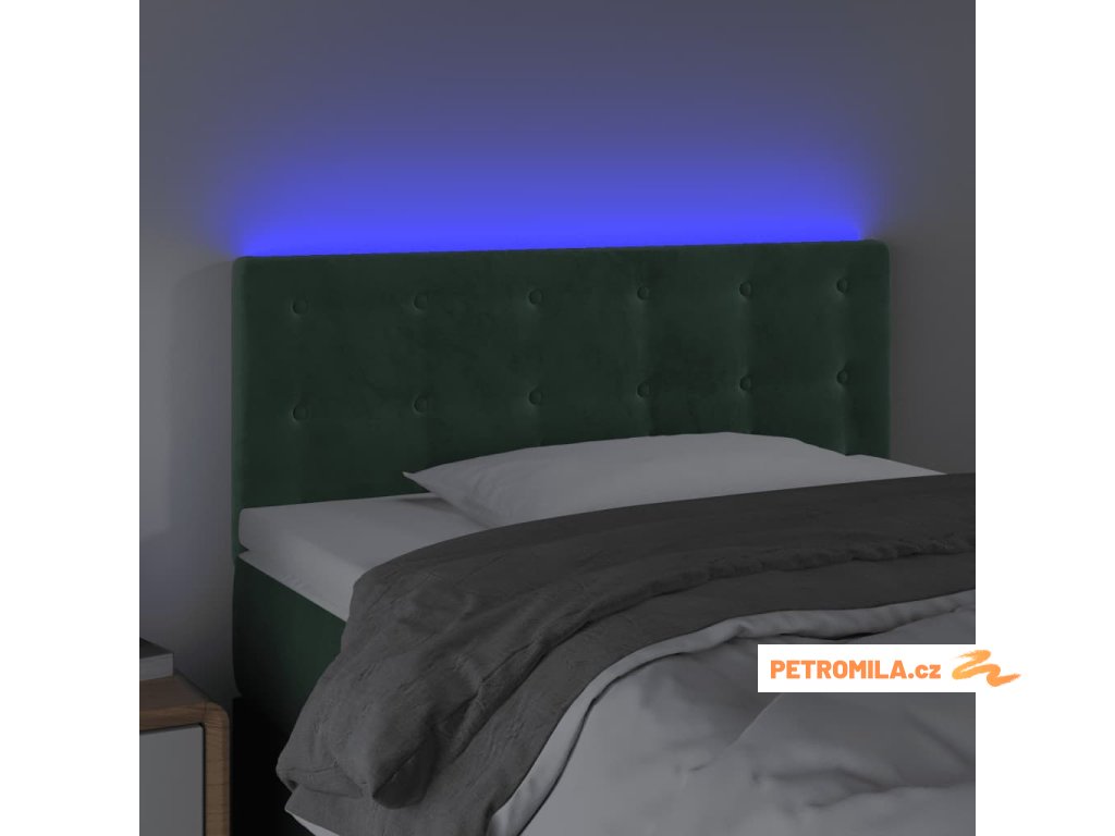 Čelo postele s LED tmavě zelené 100x5x78/88 cm samet