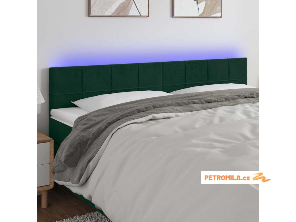 Čelo postele s LED tmavě zelené 180x5x78/88 cm samet