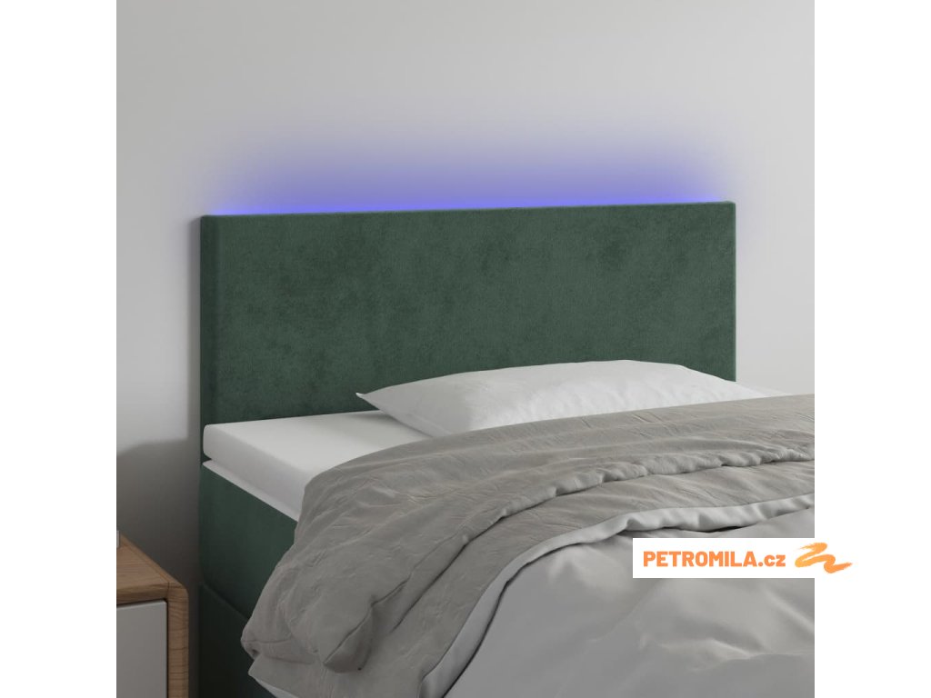 Čelo postele s LED tmavě zelené 80 x 5 x 78/88 cm samet