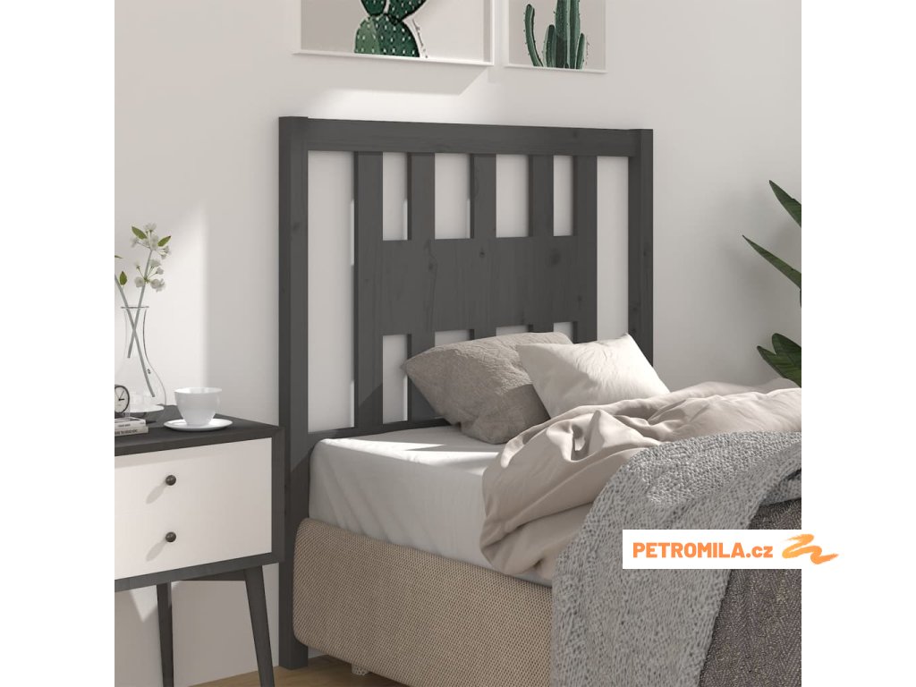 Čelo postele šedé 96 x 4 x 100 cm masivní borovice