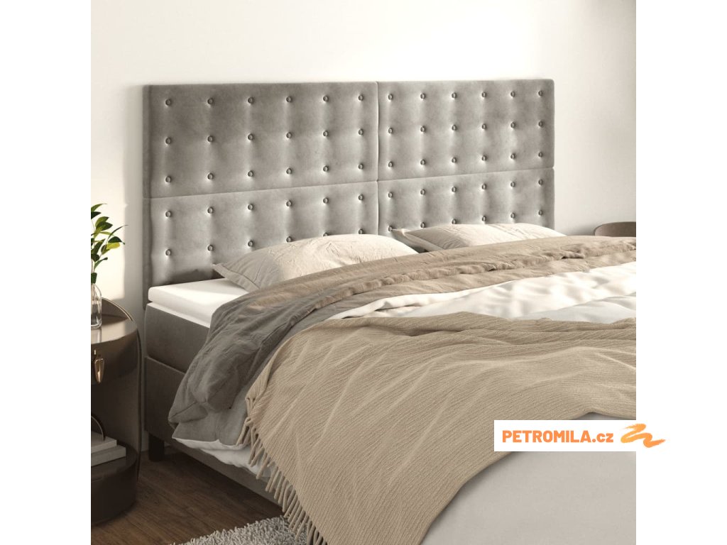 Čelo postele světle šedé 160x5x118/128 cm sametové