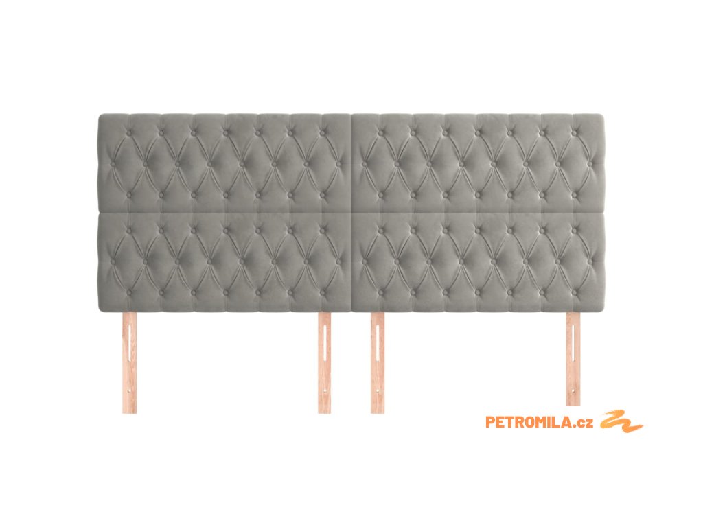 Čelo postele světle šedé 200 x 7 x 118/128 cm sametové