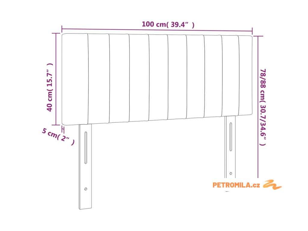 Čelo postele tmavě hnědé 100x5x78/88 cm textil