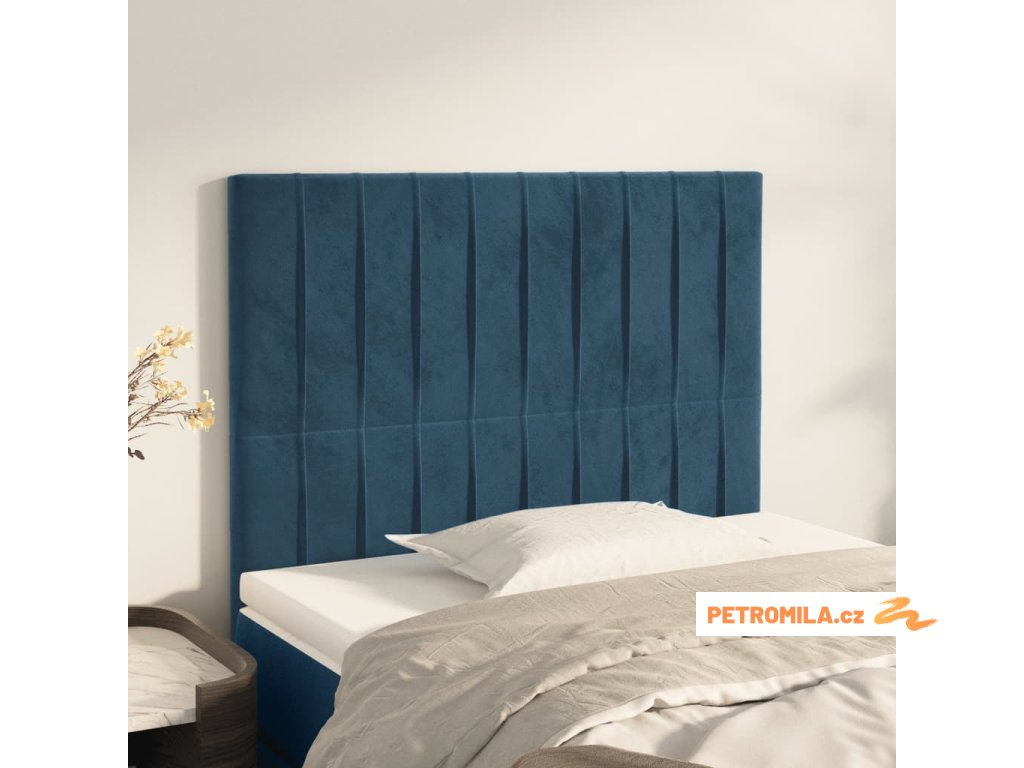 Čelo postele tmavě modré 100x5x118/128 cm sametové