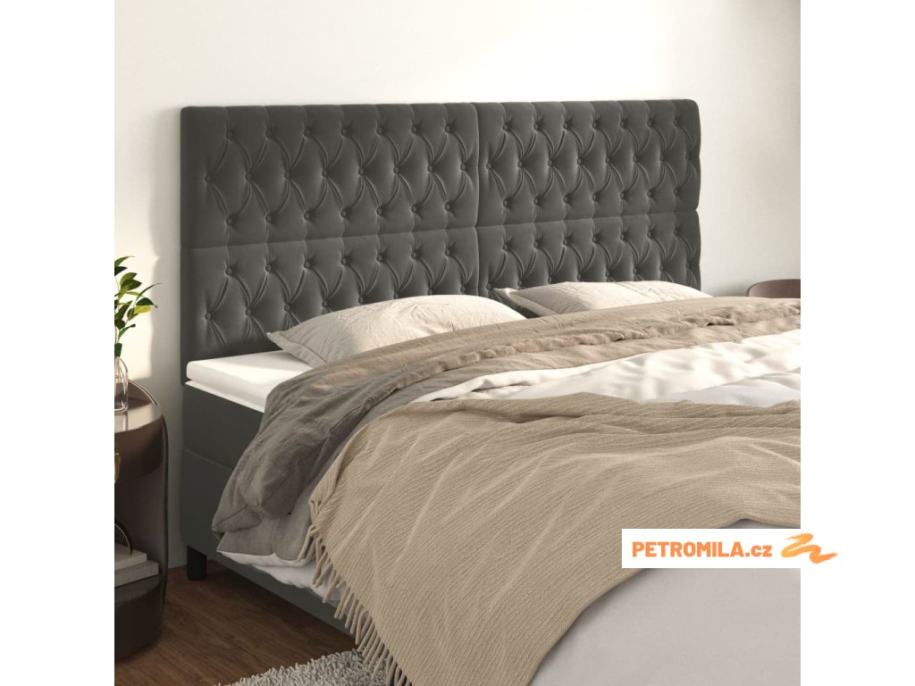 Čelo postele tmavě šedé 180x7x118/128 cm sametové