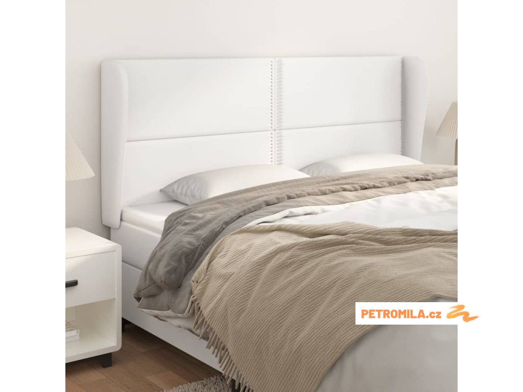 Čelo postele typu ušák bílá 183x23x118/128 cm umělá kůže