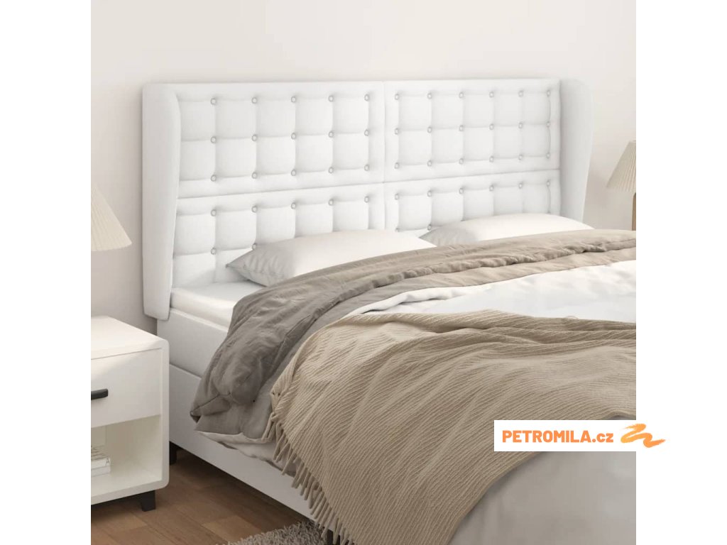 Čelo postele typu ušák bílá 183x23x118/128 cm umělá kůže
