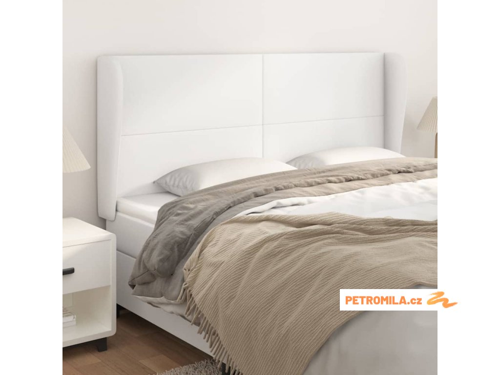 Čelo postele typu ušák bílá 203x23x118/128 cm umělá kůže