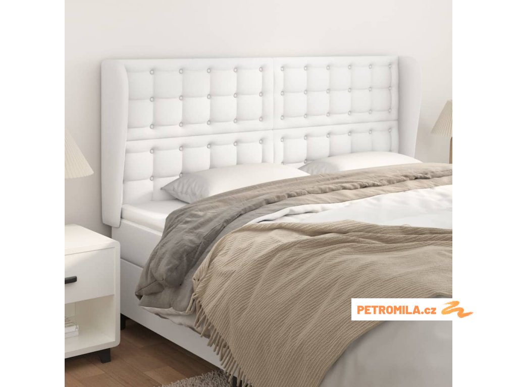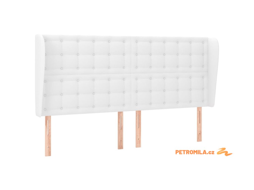 Čelo postele typu ušák bílá 203x23x118/128 cm umělá kůže