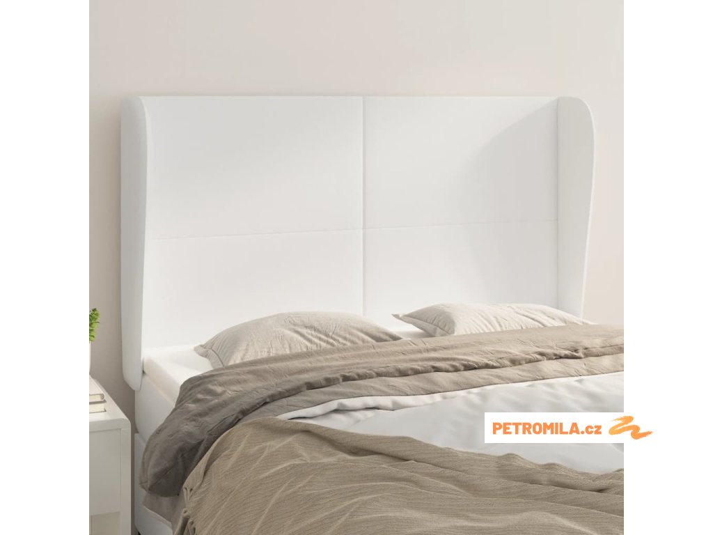 Čelo postele typu ušák bílé 147 x 23 x 118/128 cm umělá kůže