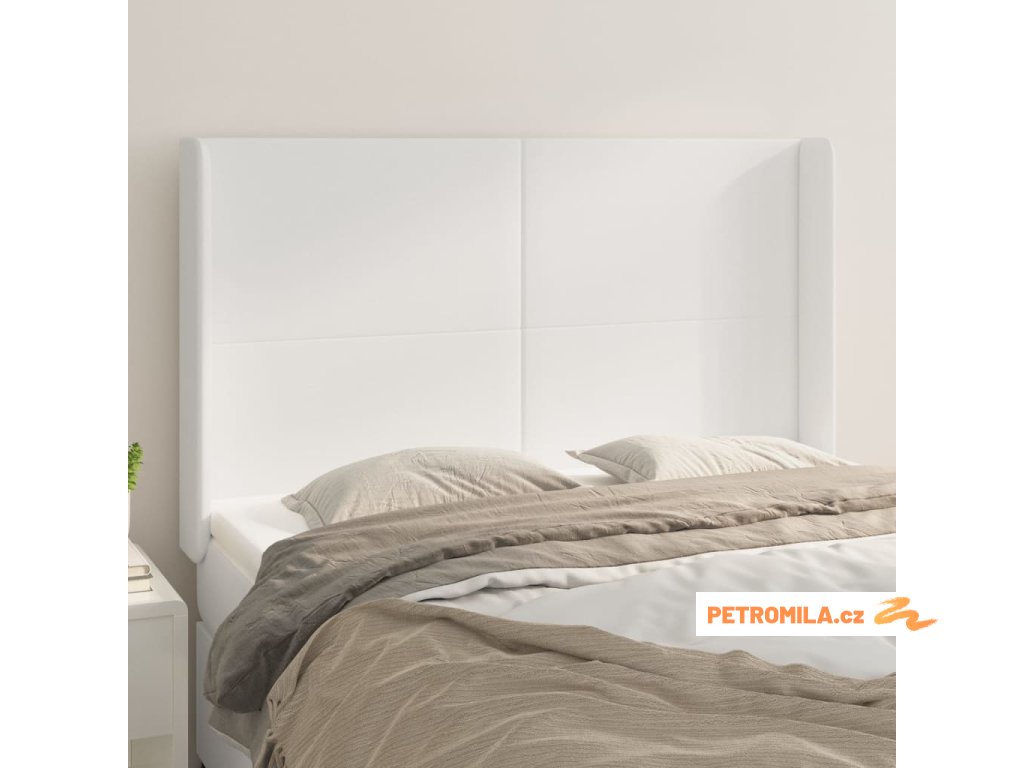 Čelo postele typu ušák bílé 147x16x118/128 cm umělá kůže