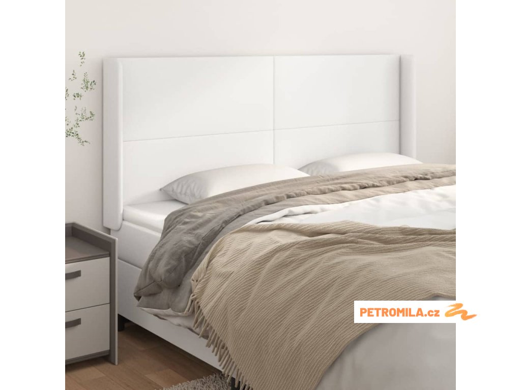 Čelo postele typu ušák bílé 163x16x118/128 cm umělá kůže