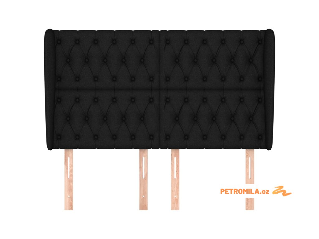 Čelo postele typu ušák černé 147x23x118/128 cm textil