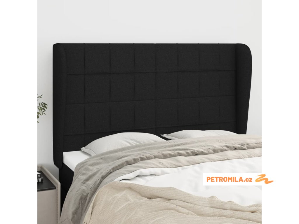Čelo postele typu ušák černé 147x23x118/128 cm textil