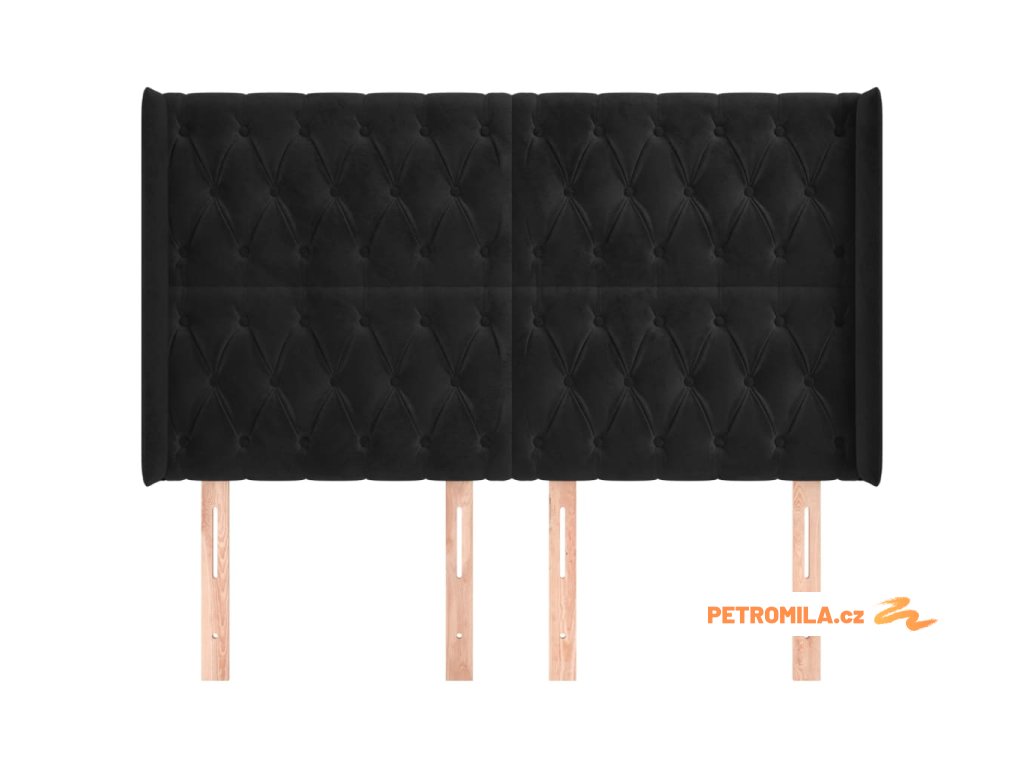 Čelo postele typu ušák černé 163x16x118/128 cm samet