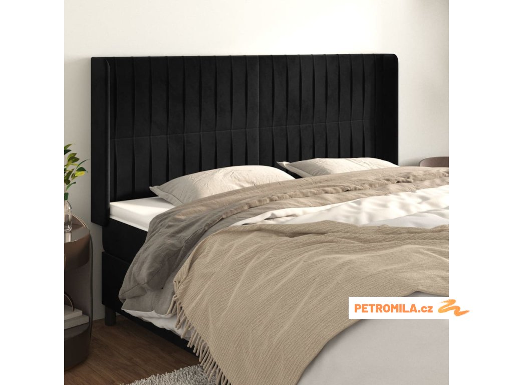 Čelo postele typu ušák černé 163x16x118/128 cm samet