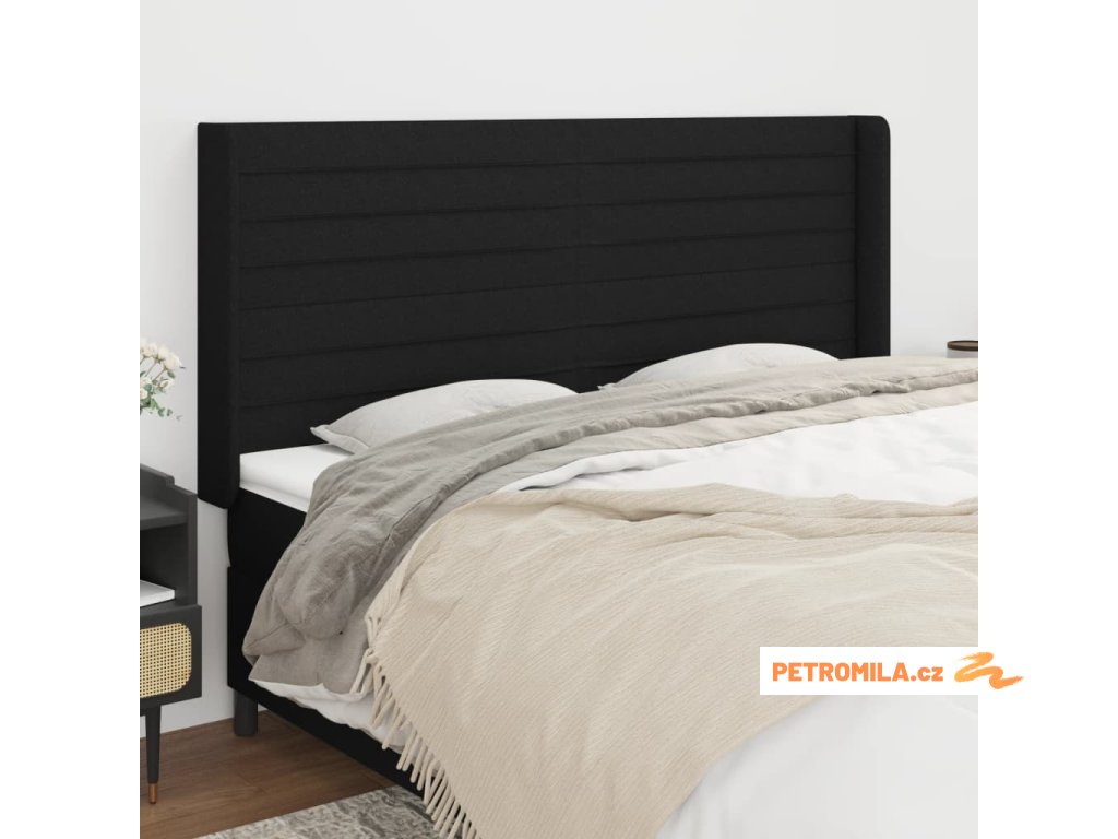 Čelo postele typu ušák černé 163x16x118/128 cm textil