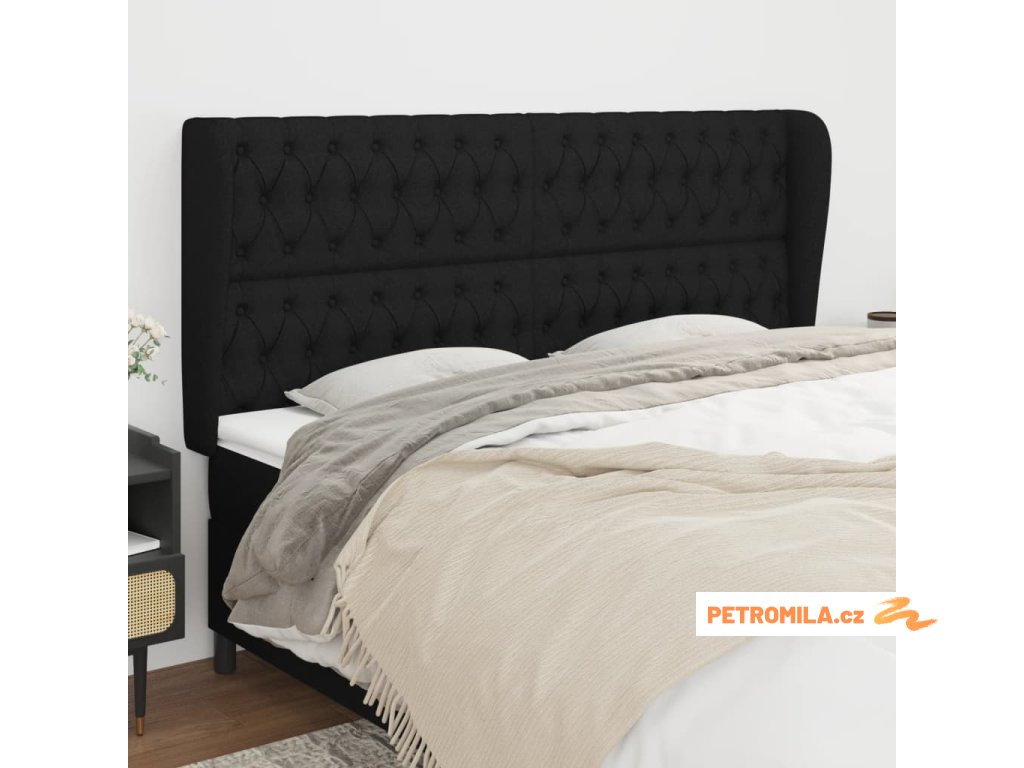 Čelo postele typu ušák černé 183x23x118/128 cm textil