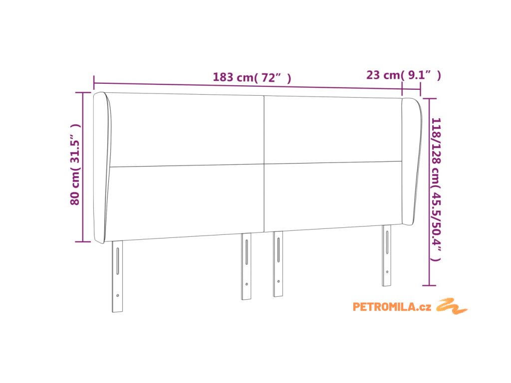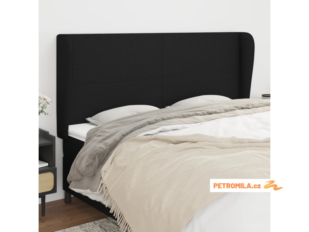 Čelo postele typu ušák černé 183x23x118/128 cm textil