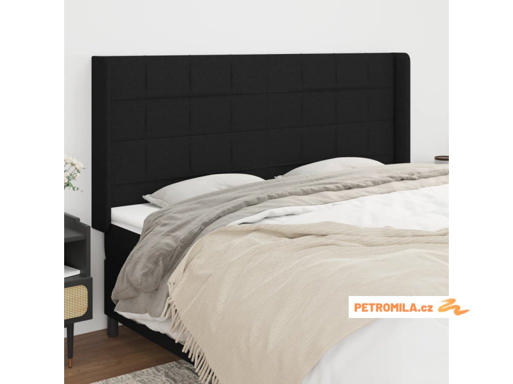 Čelo postele typu ušák černé 203x16x118/128 cm textil