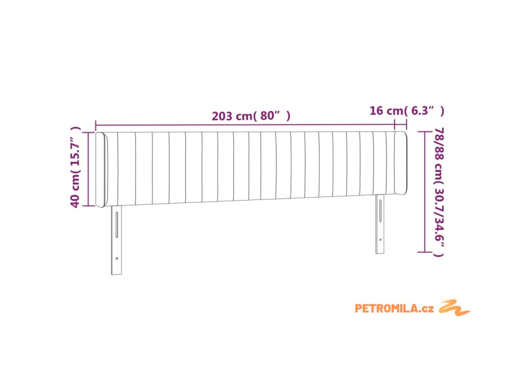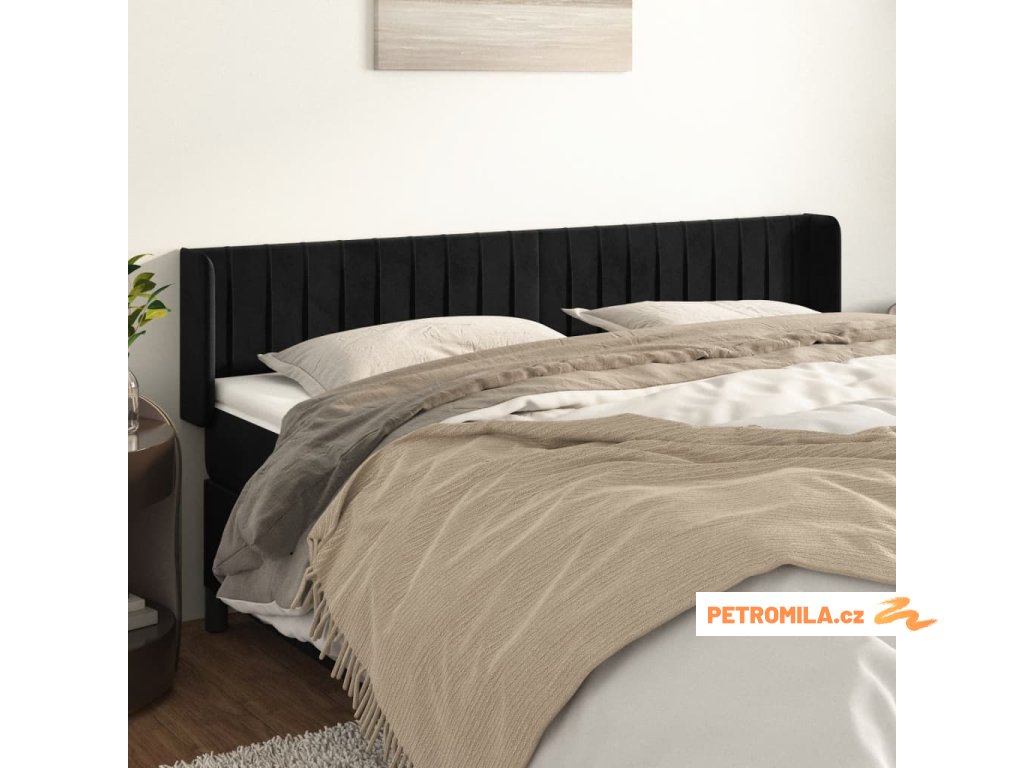Čelo postele typu ušák černé 203x16x78/88 cm samet