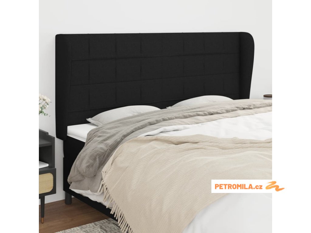Čelo postele typu ušák černé 203x23x118/128 cm textil