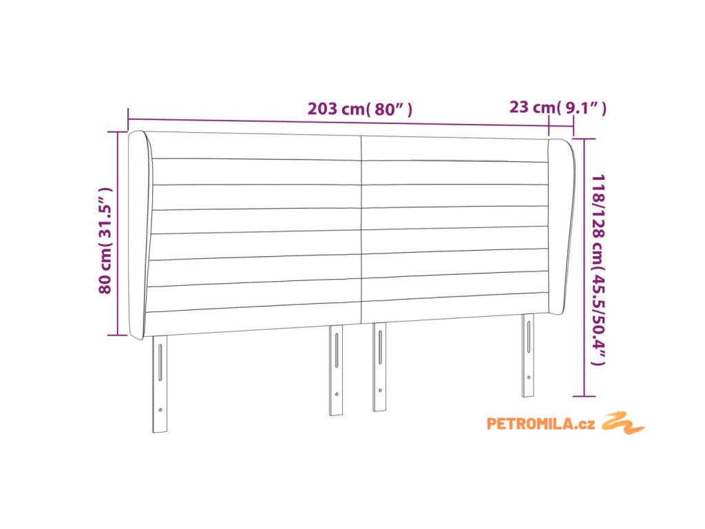 - Celkové rozměry: 203 x 23 x 118/128 cm (Š x H x V)