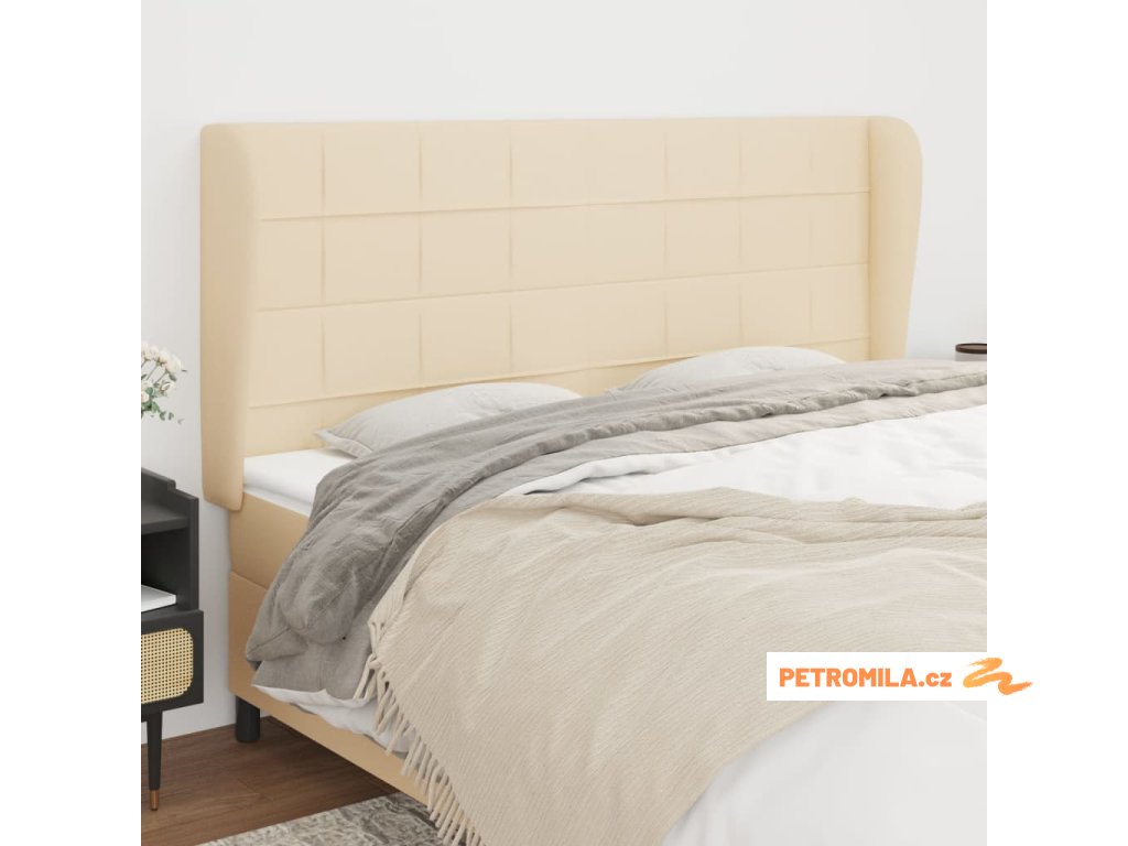 Čelo postele typu ušák krémové 163x23x118/128 cm textil