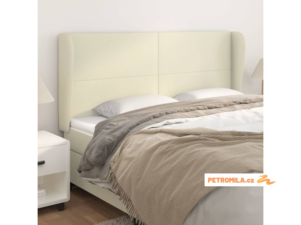 Čelo postele typu ušák krémové 183 x 23 x 118/128 cm umělá kůže