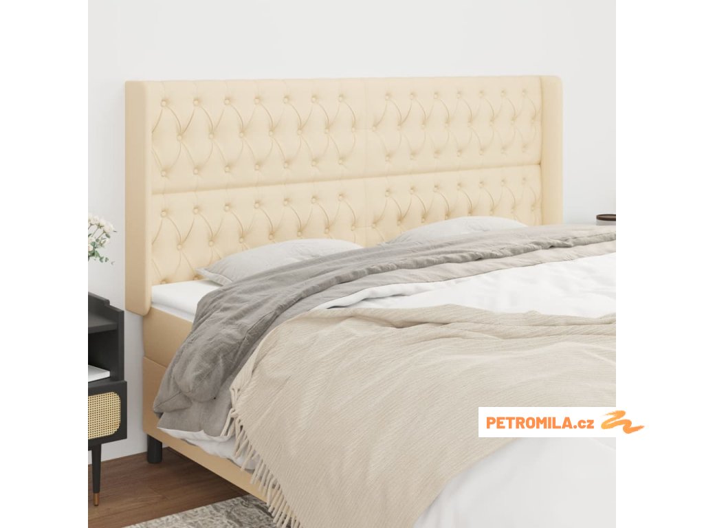 Čelo postele typu ušák krémové 183x16x118/128 cm textil