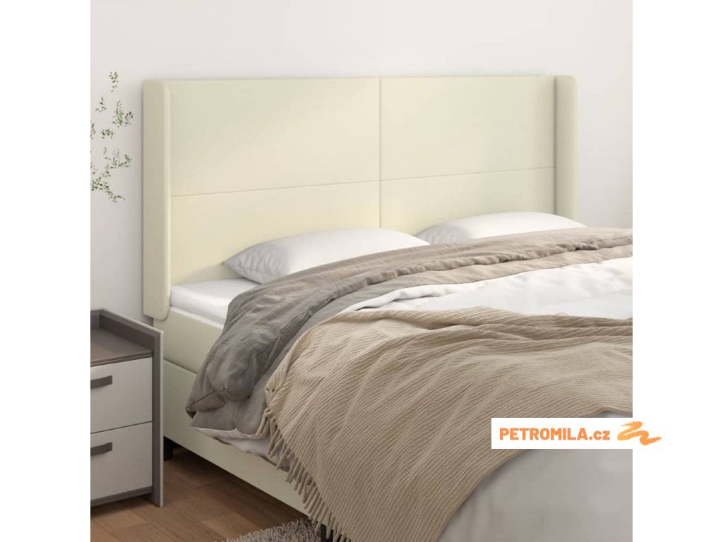 Čelo postele typu ušák krémové 183x16x118/128 cm umělá kůže