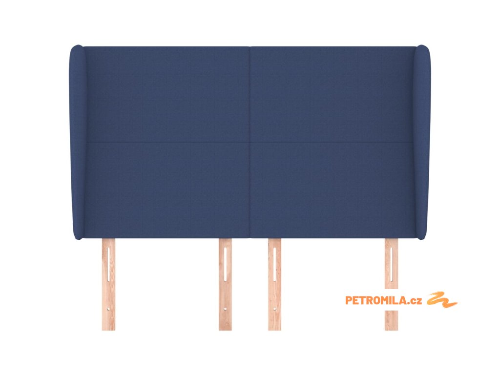 Čelo postele typu ušák modré 147x23x118/128 cm textil
