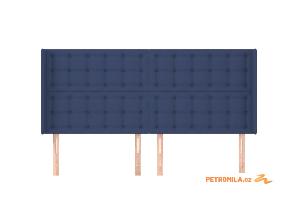 Čelo postele typu ušák modré 163x16x118/128 cm textil