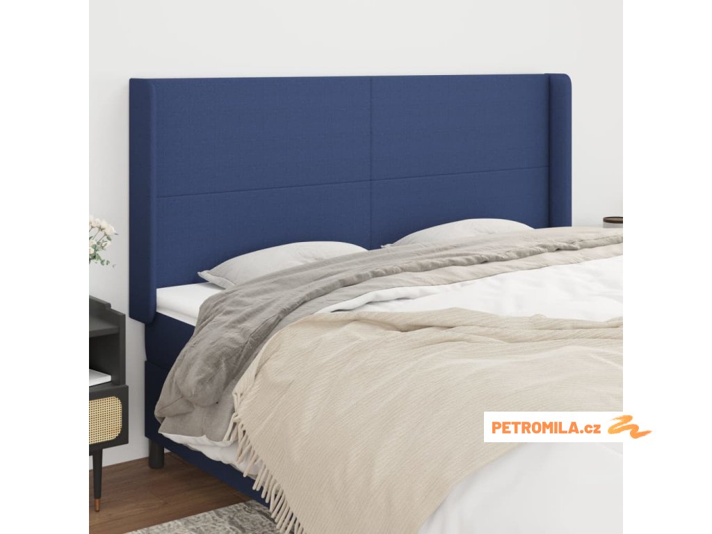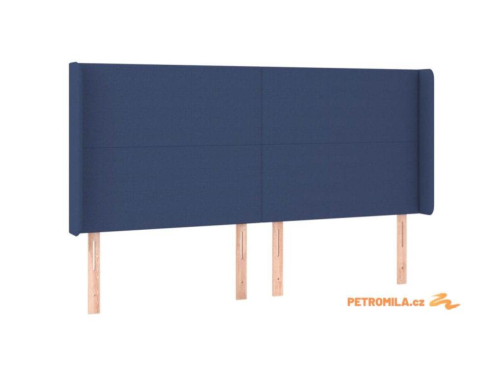 Čelo postele typu ušák modré 163x16x118/128 cm textil