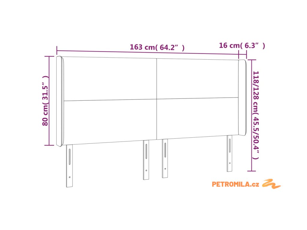 - Celkové rozměry: 163 x 16 x 118/128 cm (Š x H x V)