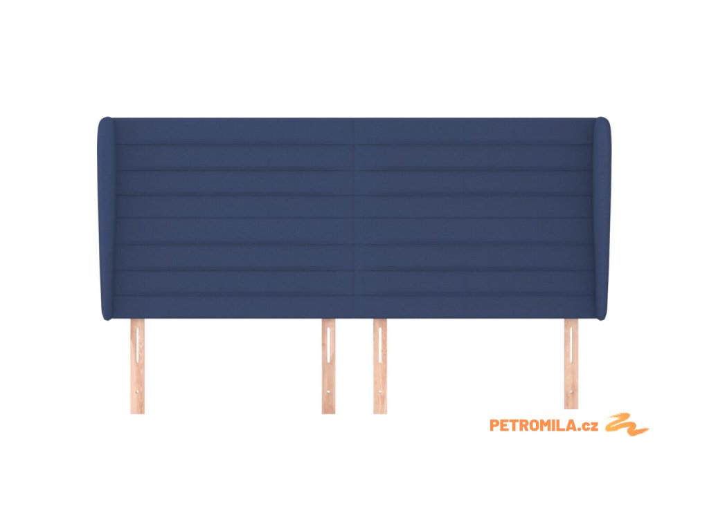 Čelo postele typu ušák modré 163x23x118/128 cm textil