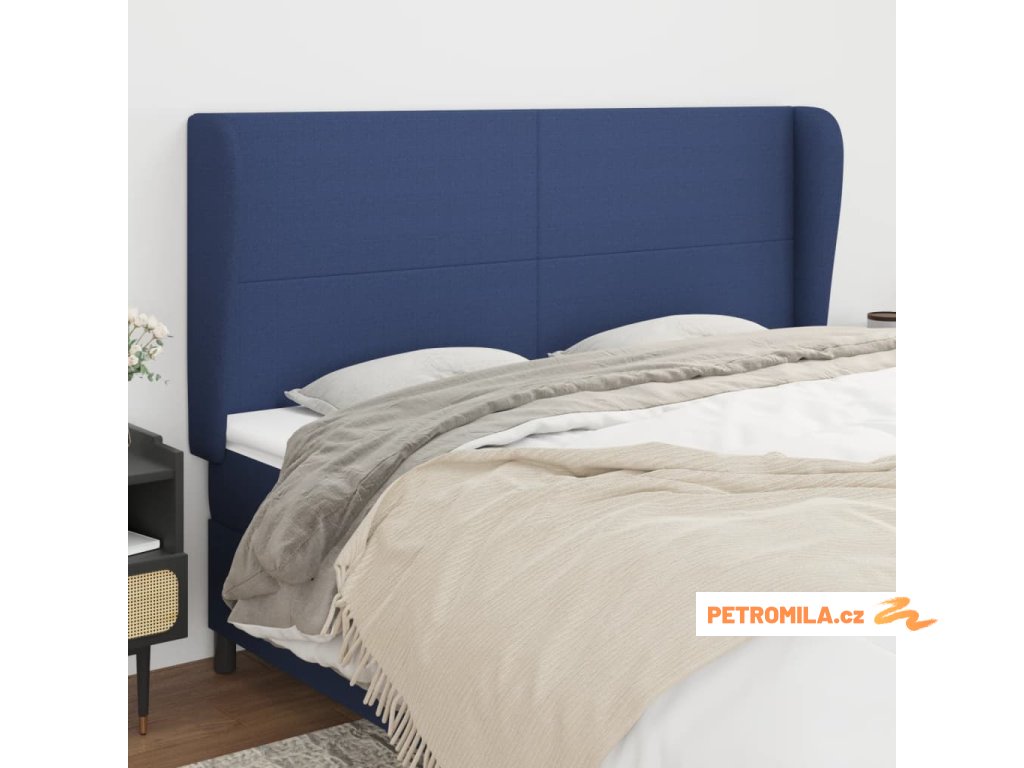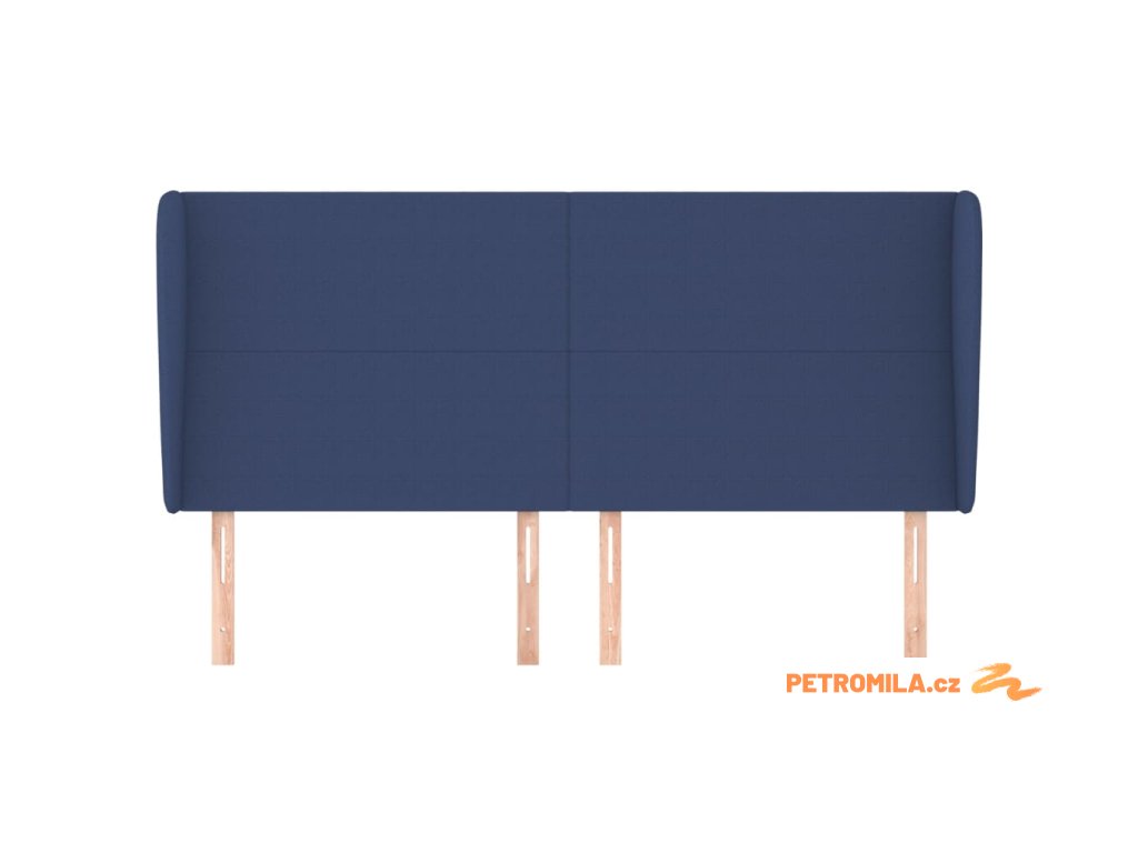 Čelo postele typu ušák modré 163x23x118/128 cm textil