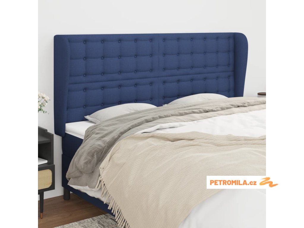 Čelo postele typu ušák modré 163x23x118/128 cm textil