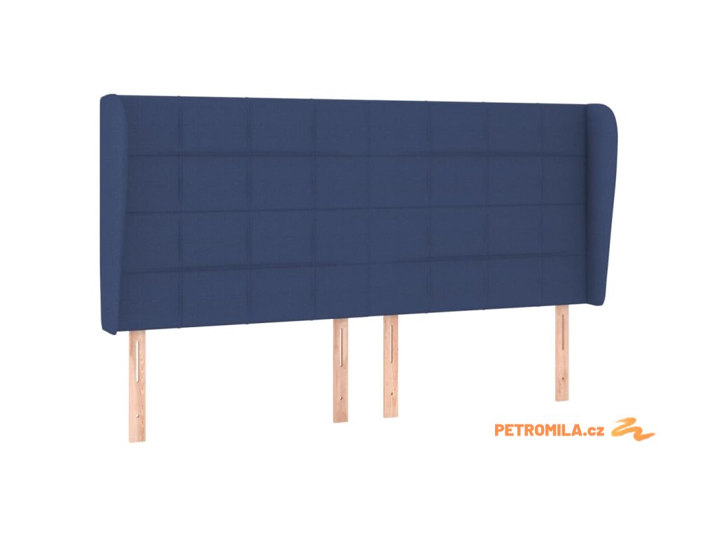 Čelo postele typu ušák modré 163x23x118/128 cm textil
