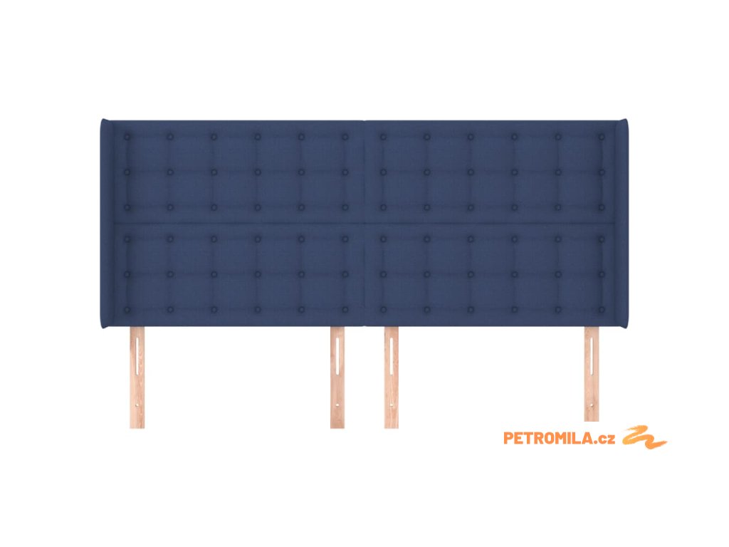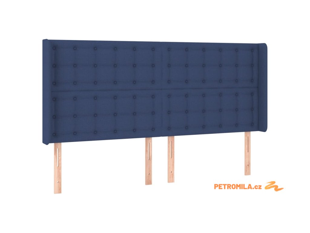 Čelo postele typu ušák modré 183x16x118/128 cm textil