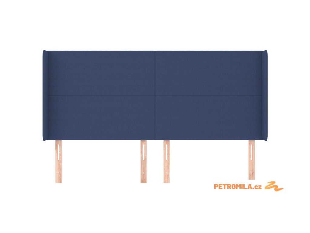 Čelo postele typu ušák modré 183x16x118/128 cm textil