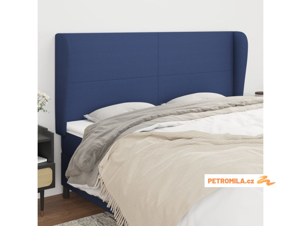 Čelo postele typu ušák modré 183x23x118/128 cm textil