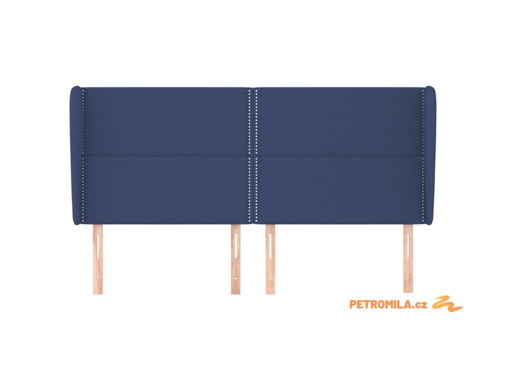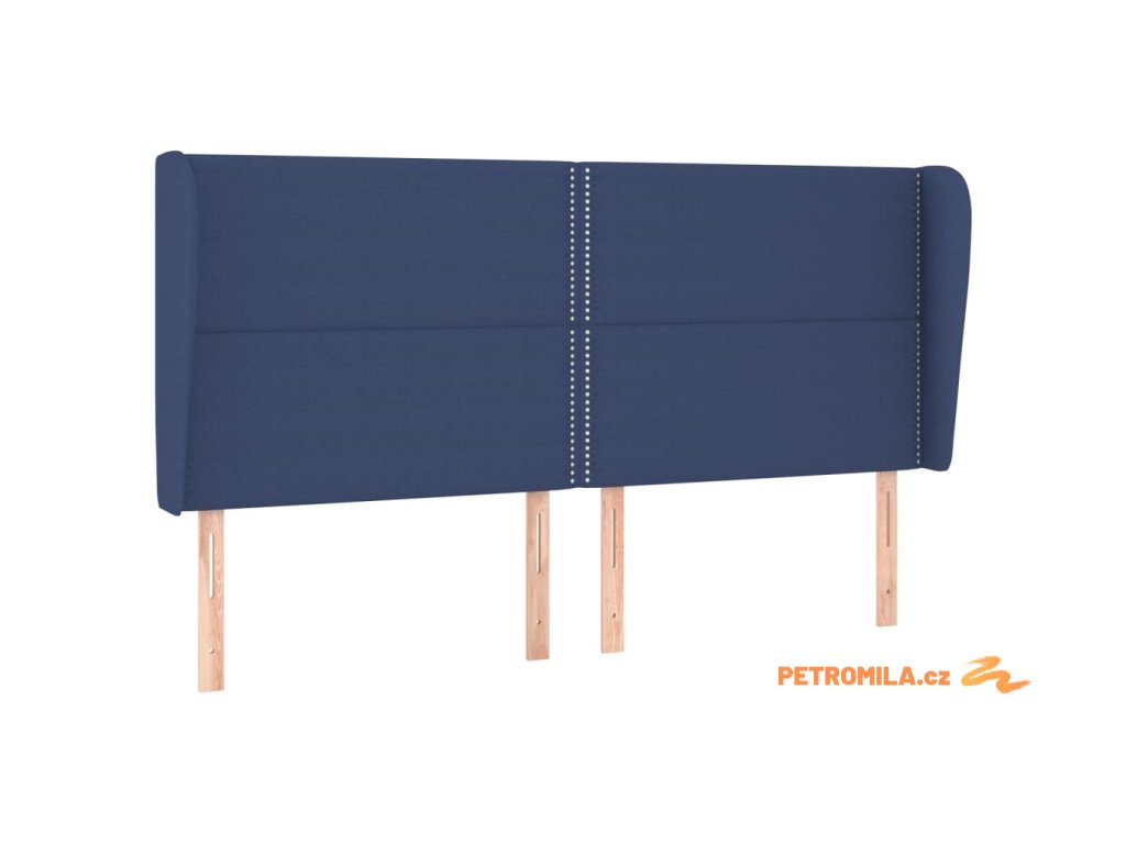 Čelo postele typu ušák modré 183x23x118/128 cm textil