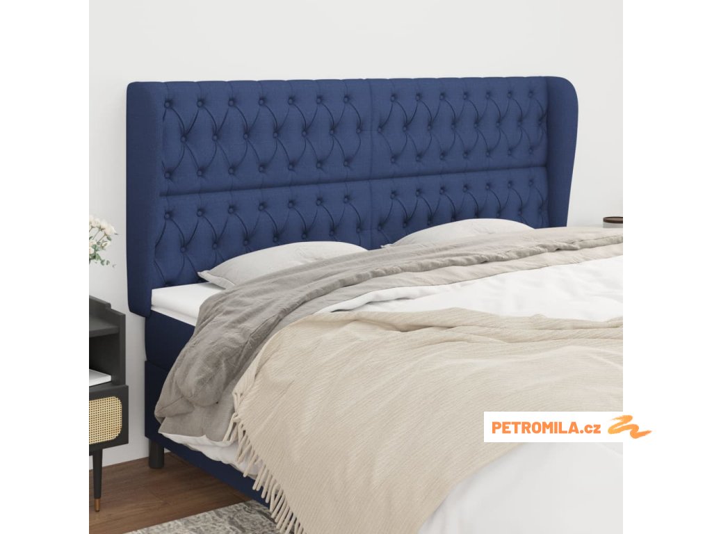 Čelo postele typu ušák modré 183x23x118/128 cm textil