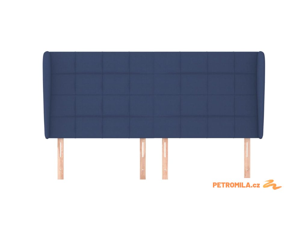 Čelo postele typu ušák modré 183x23x118/128 cm textil